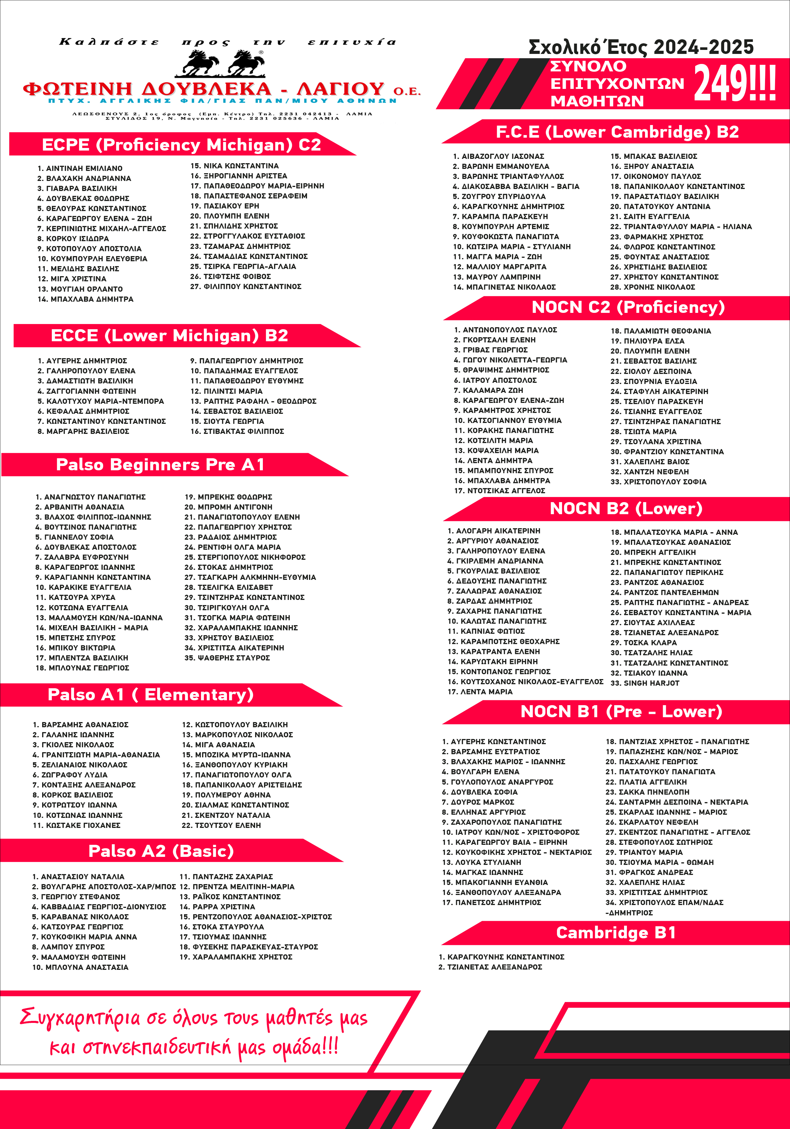 ΔΕΙΤΕ ΤΟΥΣ ΕΠΙΤΥΧΟΝΤΕΣ ΤΗΣ ΣΧΟΛΙΚΗΣ ΧΡΟΝΙΑΣ 2024-2025 ΕΔΩ |